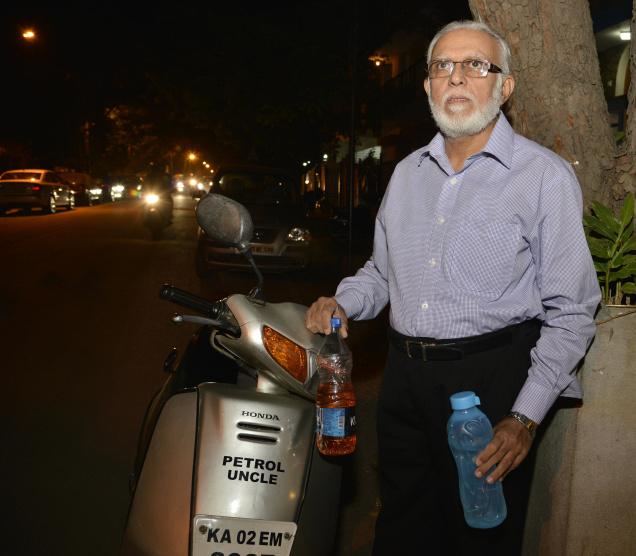 BANGALORE, December 16: A fuel tank that reads empty at an inopportune time, especially at night with no petrol station in sight, is every motorist’s nightmare. Making sure that such desperate motorists who cross his path aren’t stranded is ‘Petrol Uncle’ Mohammad Arif Sait.