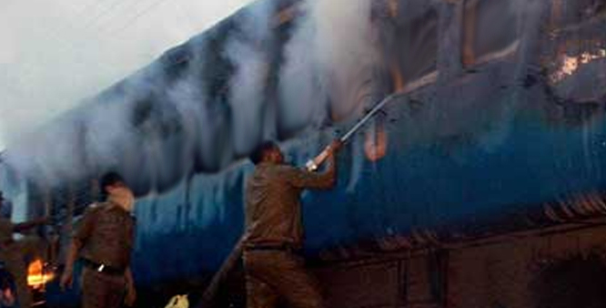 Railway authorities say that the train might have caught flames around 3.20 a.m. since the driver stopped the train soon after.