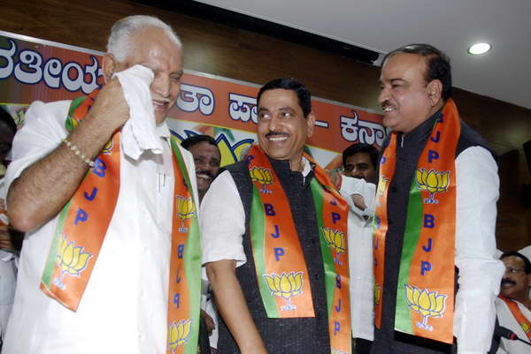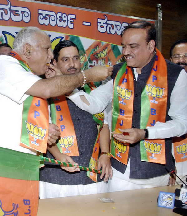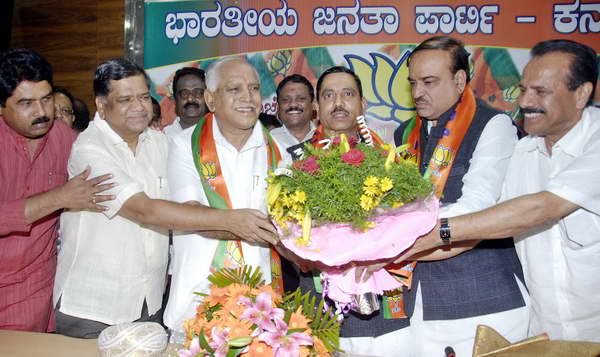 Yeddyurappa was welcomed by BJP Karnataka unit President Prahlad Joshi and other senior state leaders as he stepped into the party state headquarters along with his supporters. He was given the party primary membership at a function in which no national leader was present.”Let us forget the past….let us remove the mutual suspicion and work together as the children of a mother”, said Yeddyurappa, who had announced the decision of his party Karnataka Janata Paksha (KJP) to merge with BJP a week ago.He said “because of our certain wrong decisions” the Congress which had been pushed to the corner had returned to power in Karnataka and added, “we had committed an unpardonable crime (by enabling it).”