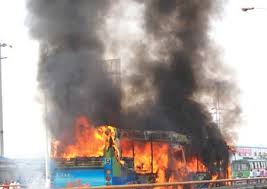A NEKRTC bus was set on fire near Khajuri in Aland taluk, Bande’s home town, and a few vehicles were stoned in Gulbarga. A bandh was observed in Gulbarga and Aland.