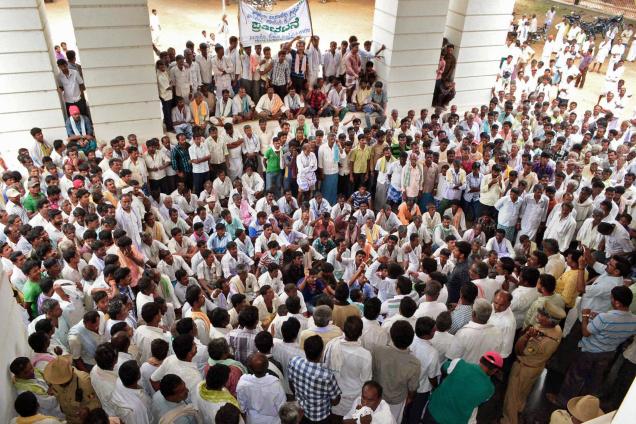 A large number of farmers from the Nidaghatta tail-end region staged a protest outside the Irrigation Department office off the Bangalore-Mysore Highway here on Friday, to protest against the department’s “failure” to ensure regular water supply for their crops.