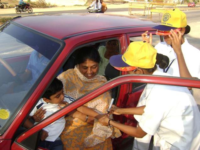 Mandya Deputy Commissioner B.N. Krishnaiah inaugurated the drive by administering polio drops to children on Bangalore-Mysore near Kallahalli. Mandya City Municipal Council president B. Siddaraju, vice-president Chandrakala Shivaram, Mandya district Kannada Sahitya Parishat president Meera Shivalinagaiah, and District Health Officer (DHO) T.N. Marigowda were present.