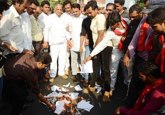 The police took into custody the black flag-waving protesters, including the former legislators B.N. Bachche Gowda, K. Jyothi Reddy and Shashwatha Neeravari Horata Samithi leader Anjaneya Reddy.