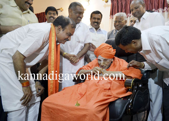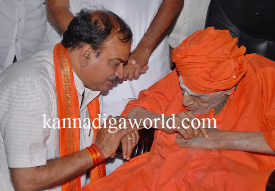 Dignitaries, including BJP candidate from the Chickballapur Lok Sabha constituency B.N. Bache Gowda, the former Minister Ramachandregowda, BJP candidate in Tumkur G.S. Basavaraj, Congress candidate in Tumkur S.P. Muddahanumegowda, and Rafiq Ahmed, MLA, visited the math and greeted the seer.