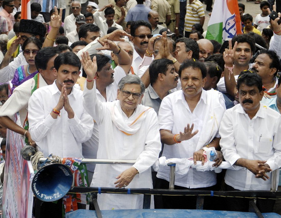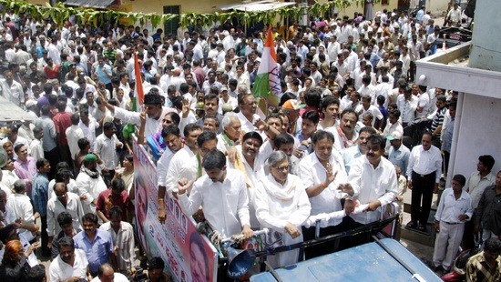 The crowd comprising Congress workers and local residents broke into loud applauses every few minutes. The voices of the crowds who screamed slogans grew louder when Mr. Krishna took digs at the performance of the Bharatiya Janata Party government. “People want change. They are tired of the BJP. Have you heard of any Chief Minister going to jail? Several Congress leaders had gone to jail during the freedom struggle.