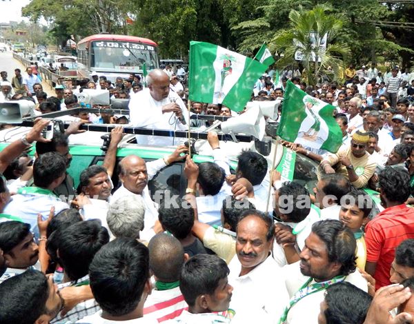 JD(S) star campaigner H D Kumaraswamy is scheduled to campaign in Bangalore Rural and Chikkaballapur segments, where he is the party candidate. Party national president Deve Gowda, who is contesting from Hassan, will campaign in his constituency, where he is camping for the last two days.