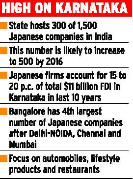 By the number of Japanese companies, Bangalore ranks fourth after Delhi-NOIDA, Chennai and Mumbai. “By significance, Bangalore is above that. We expect to have 500 companies in Karnataka by 2016 and 1,000 Japanese companies by 2020,” Mr. Anand told The Hindu.