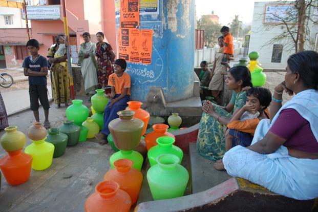 “People in my village spend a lot of time on fetching water under the hot sun. As soon as the pumpsets installed on agricultural lands are switched on, they rush towards it,” Rangappa Gowda, a farmer in Dugganur village, around 30 km from here, says pointing at people carrying water pots.