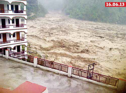 The hotel owner, who met us at 2.30 am, told us that his other hotel near Gaurikund had gone under the floods. He warned us that if we didn’t get out now, we could meet the same fate here. The floods had completely ravaged the building’s lower parking lot, taking with them all the vehicles that had been parked there. Some drivers had been sitting in a bus down there. They didn’t survive.