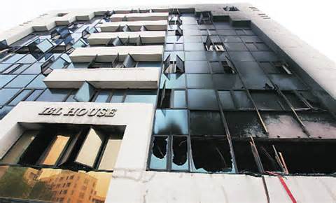The fire was doused only around 2 am, and was blamed on the nonfunctional fire fighting equipment and the glass facades in the building.
