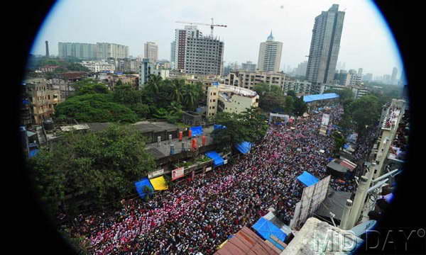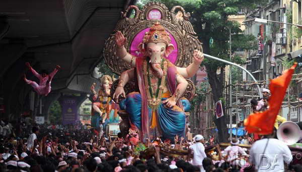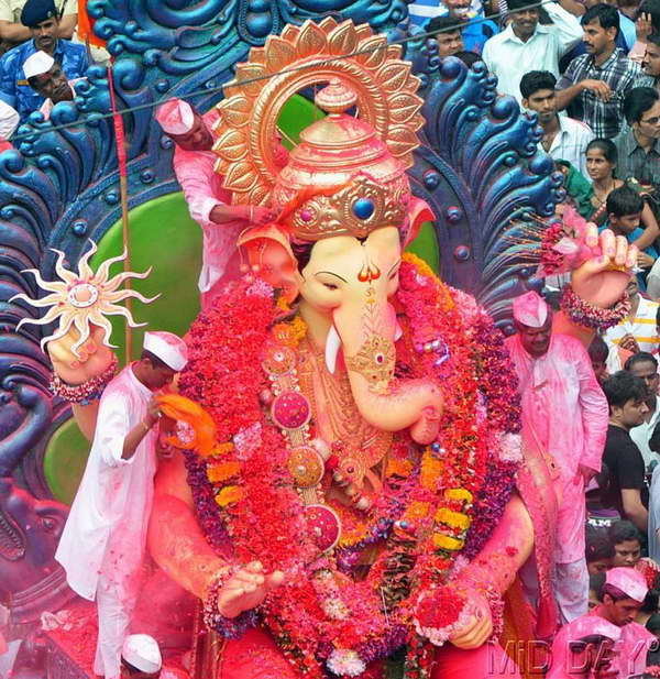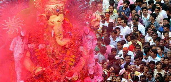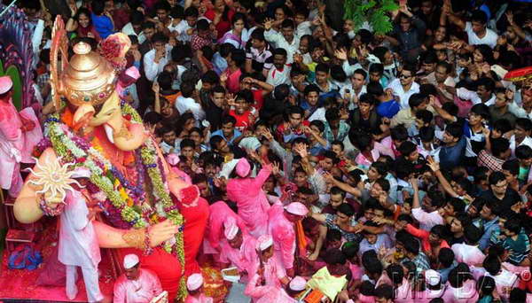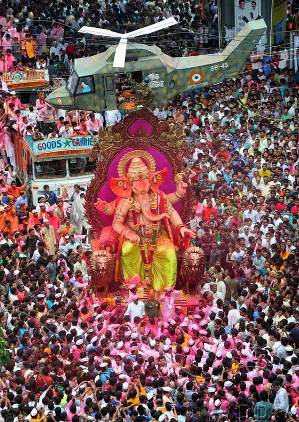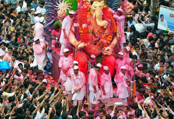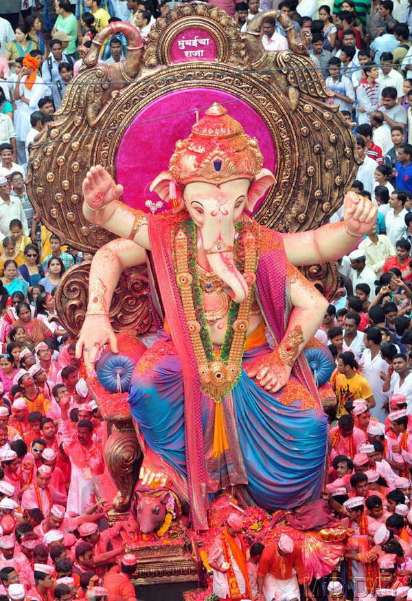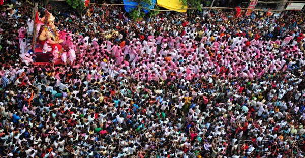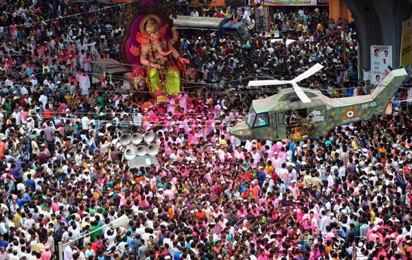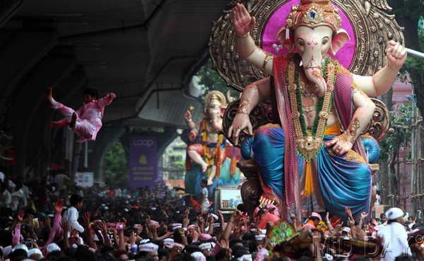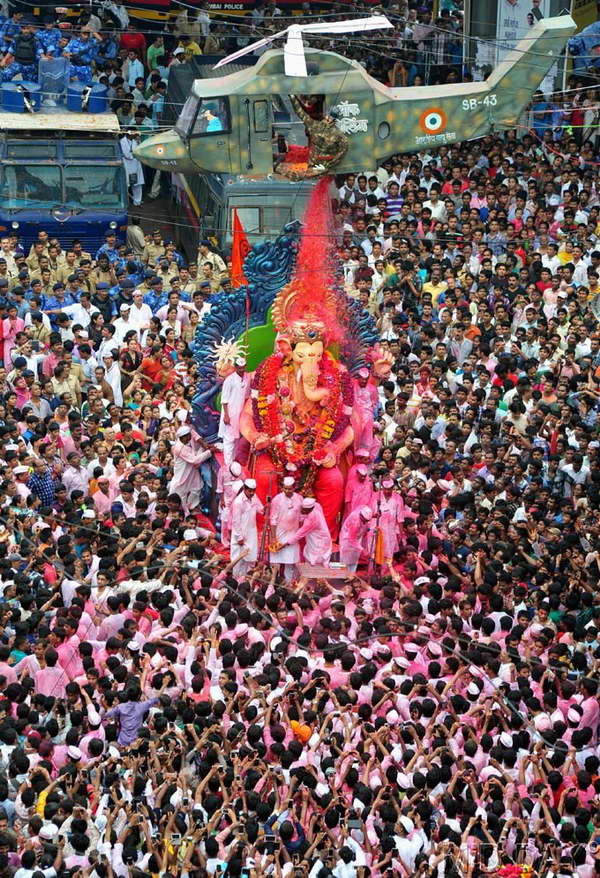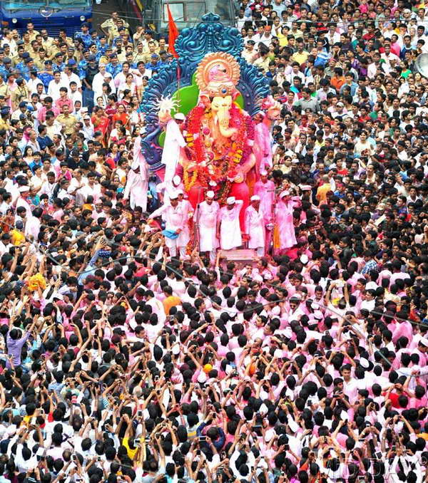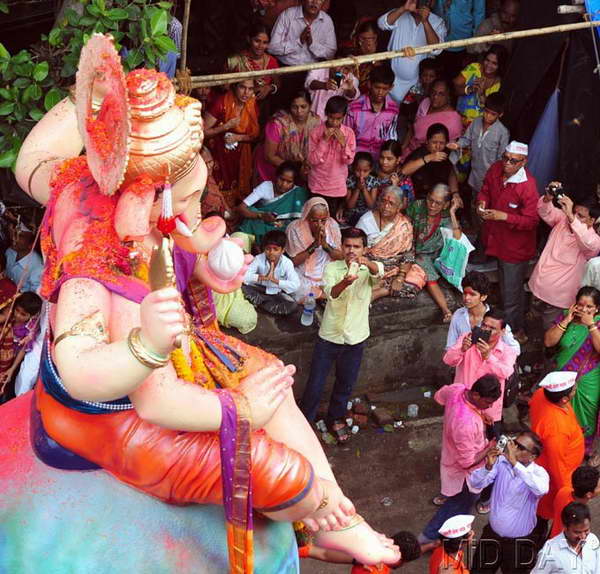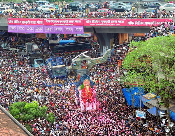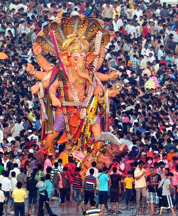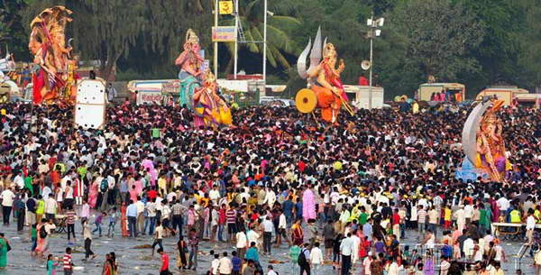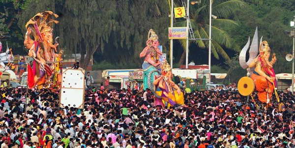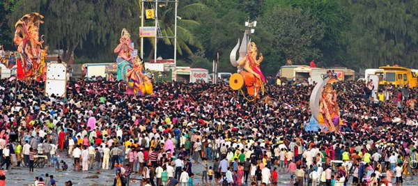 The processions progressed slowly Wednesday, as a sea of humanity accompanied the idols to designated immersion sites at the beaches, creeks, ponds, lakes, wells and specially created artificial immersion spots around the city, and big and small rivers in the rest of Maharashtra.