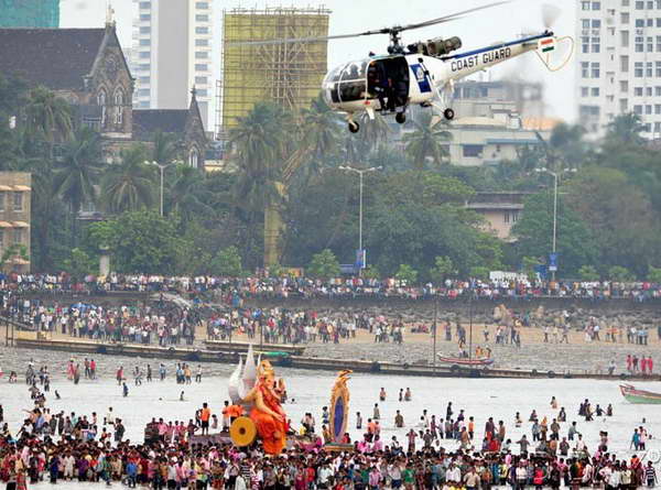 Mumbai’s traditional immersion spots are the beaches at Girgaum Chowpatty, Shivaji Park, Worli, Juhu, Versova, Marve, Madh Island, Manori, Gorai, Thane Creek, Bhayander Creek, Vasai Creek and a lake inside the Sanjay Gandhi National Park in Borivli.