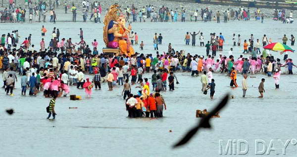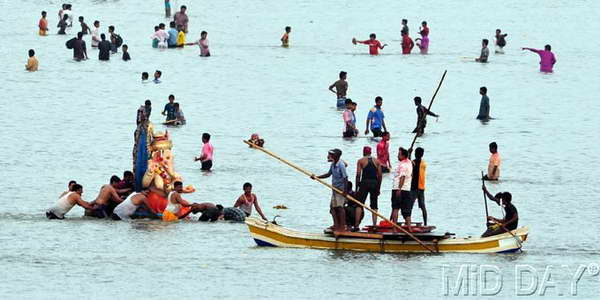 This forced the BMC to issue special alerts dissuading people from venturing into the sea water more than a metre deep, and asking them to wear gum-boots. Devotees were told not to enter the water bare-bodied, and children were asked to steer clear of the water.