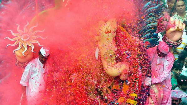 The day started with colourful revelry, as people sang bhajans and danced, and performed aartis of around 100,000 big and small idols of Lord Ganesha before taking them in huge processions to the beats of drums in the fourth and final phase of immersion Wednesday.