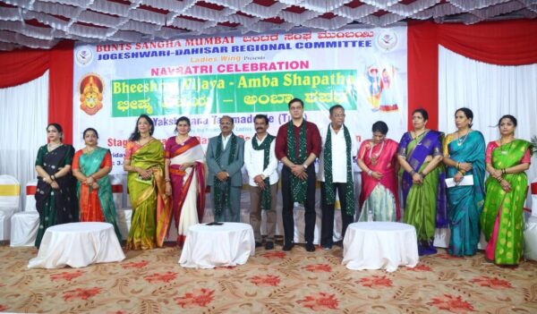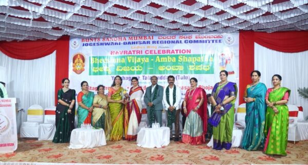 ಬಂಟರ ಸಂಘ ಮುಂಬಯಿ ಜೋಗೇಶ್ವರಿ-ದಹಿಸರ್ ಸಮಿತಿಯ ಮಹಿಳಾ ವಿಭಾಗದ ವತಿಯಿಂದ ನವರಾತ್ರಿ ನಿಮಿತ್ತ ಅ. 4 ರಂದು ಪ್ರಾದೇಶಿಕ ಸಮಿತಿಯ ಕಾರ್ಯಾಧ್ಯಕ್ಷರಾದ ಪ್ರೇಮನಾಥ ಶೆಟ್ಟಿ ಕೊಂಡಾಡಿ ಇವರ ನೇತೃತ್ವದಲ್ಲಿ, ಯಕ್ಷಗಾನ ತಾಳಮದ್ದಳೆ ಮತ್ತು ದಾಂಡಿಯಾ ರಾಸ್ ಕಾರ್ಯಕ್ರಮವು ಕಾಂದಿವಲಿ ಪೂರ್ವ ಅವೆನ್ಯೂ ಹೋಟೇಲಿನ ಸಭಾಂಗಣದಲ್ಲಿ ಬಂಟರ ಸಂಘದ ಅಧ್ಯಕ್ಷರಾದ ಪ್ರವೀಣ್ ಭೋಜಶೆಟ್ಟಿಯವರ ಅಧ್ಯಕ್ಷತೆಯಲ್ಲಿ ಜರಗಿದ್ದು ಮಕ್ಕಳ ಪ್ರಾರ್ಥನೆಯೊಂದಿಗೆ ದೇವಿಗೆ ಆರತಿ ಬೆಳಗಿಸಿದ ಬಳಿಕ ಸಭಾಕಾರ್ಯಕ್ರಮದ ಅಧ್ಯಕ್ಷತೆಯನ್ನು ವಹಿಸಿ ಅವರು ಮಾತನಾಡಿದರು.