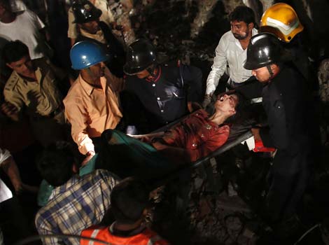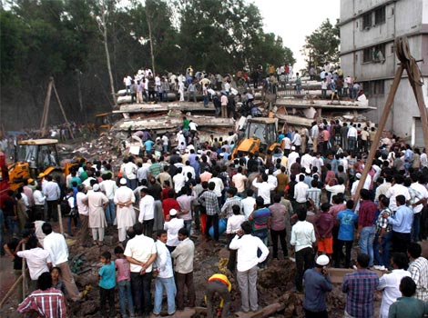 Police officer Dahi Dhule said that rescue workers with sledgehammers, gasoline-powered saws and hydraulic jacks worked through Friday night to break through the tower of rubble in their search for possible survivors. Six bulldozers were brought to the scene.