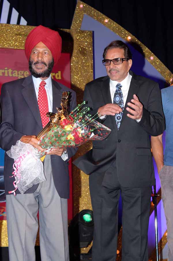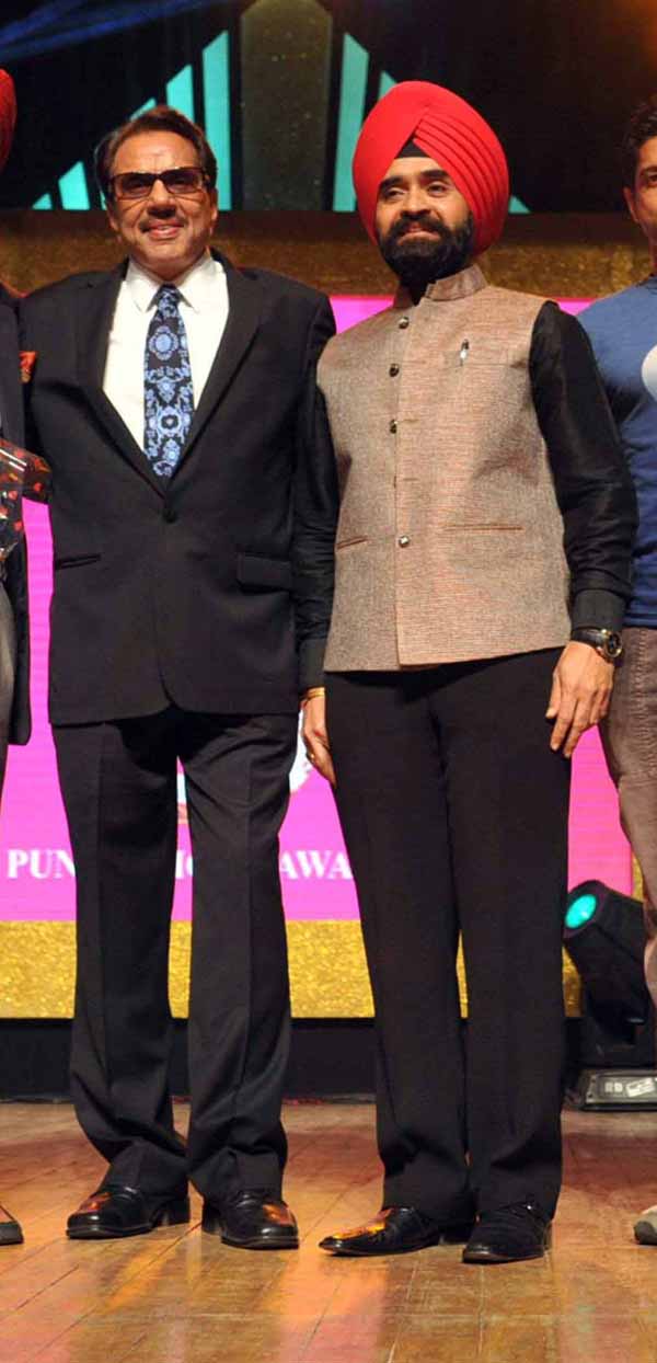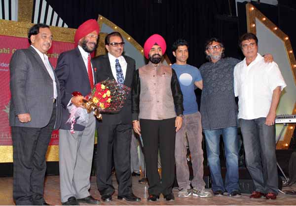Mumbai April 14 :- “Baishaki Di Raat” was rocked by the mix of Punjabi Icon’s from Bollywood, politics, sports and business which was organised by Punjabi Culture Heritage Board president Congress MLC Charan Singh Sapra and he honoured “PUNJABI ICON AWARDS” to the Punjabis who have excelled in their respective fields. Dharmendra paji came in first in a black suit and was seen flashing his smile to crowd he said, “This is auspicious moment for me. I am very grateful Charanji called me on Baisakhi Di Raat and I wish all of you happy Baisakhi Di Raat.” Neha Dhupia was looking gorgeous in black saree and added more colour and flavour. Farhan Akhtar was seen honouring Milkha Singh he said, “It’s a great moment for me to present here with him and I am lucky to get a chance to honour Milkhaji.” While Mikha Singh shares his experience for achieving the honour and Loral for the country.