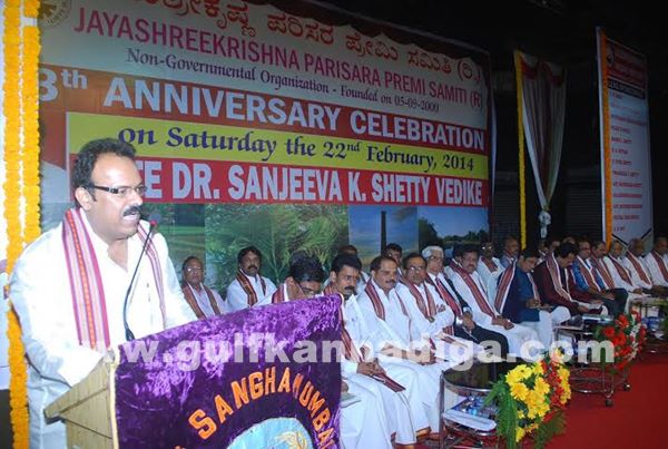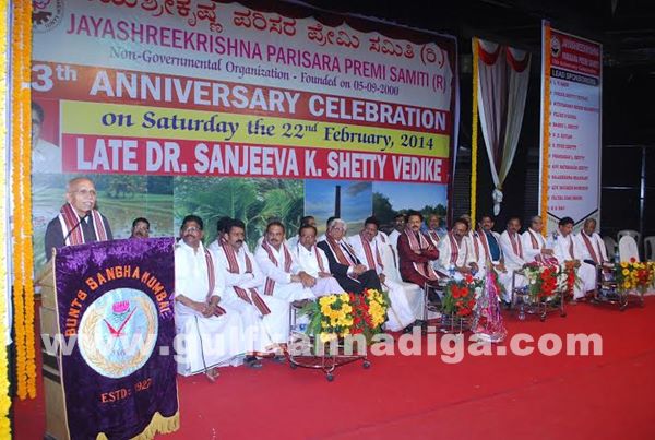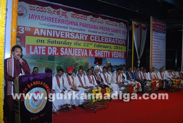 After inaugurating the 13th Anniversary celebration of Jayashreekrishna Parisara Premi Samiti along with CA Shankar B. Shetty president of Bunts Sangha Mumbai and other dignitaries on 22nd February at Late Dr. K. Sanjeeva Shetty Vedike, at Smt Radhabai Timmappa Bhandary Hall in Kurla (East) he was addressing the people of Costal Karnataka and said The developments of our districts will be done as per the requirements of our people. He re collected the hard work done during his childhood and said with the hard work one can see the success in life, like some of the prominent people in Mumbai who have studied in night school and are now in top level. In this way people recognized us in national level. Referring the presence of about 20 presidents of various community organisations in Mumbai he said ‘this is our strength.’