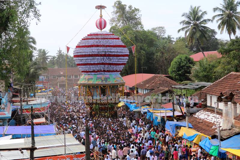 ಬೆಳಿಗ್ಗೆ 12.15 ಕ್ಕೆ ದೇವಸ್ಥಾನದಿಂದ ವೈಭವದ ಮೆರವಣಿಗೆಯಲ್ಲಿ ಬಂದ ಕೋಟಿಲಿಂಗೇಶ್ವರ ಹಾಗೂ ಪರಿವಾರ ದೇವತೆಗಳನ್ನು ರಥದಲ್ಲಿ ಕುಳ್ಳಿರಿಸಿದ ಬಳಿಕ ಮಂಗಳರಾತಿ, ಹಣಕಾಯಿ ಹಾಗೂ ಕಾಯಿ ಒಡೆಯುವ ಸೇವೆಗಳನ್ನು ಮುಗಿಸಿದ ಬಳಿಕ ರಥ ಬೀದಿಯಲ್ಲಿ ರಥವನ್ನು ಎಳೆಯುವ ಮೂಲಕ ರಥೋತ್ಸವವನ್ನು ಆಚರಿಸಲಾಯಿತು. ದೇವಸ್ಥಾನ ತಂತ್ರಿ ಪ್ರಸನ್ನ ಐತಾಳ್ ನೇತ್ರತ್ವದಲ್ಲಿ ಧಾರ್ಮಿಕ ವಿಧಿಯನ್ನು ಆಚರಿಸಲಾಯಿತು.