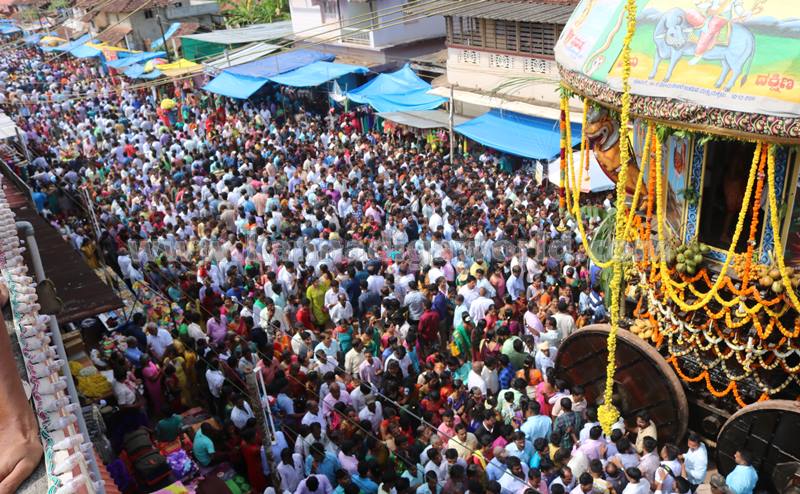 ಈ ಬಾರಿಯ ಕೊಡಿ ಹಬ್ಬಕ್ಕಾಗಿ ಭಾನುವಾರ ನಸುಕಿನಿಂದಲೆ ಧಾರ್ಮಿಕ ಆಚರಣೆಗೆ ತೊಡಗಿದ ಭಕ್ತರು ಮಧ್ಯಾಹ್ನ 12.46 ಕ್ಕೆ ನಡೆದ ವೈಭವದ ರಥೋತ್ಸವದ ಆರೋಹಣವನ್ನು ಕಣ್ಮನ ತುಂಬಿಕೊಂಡರು.