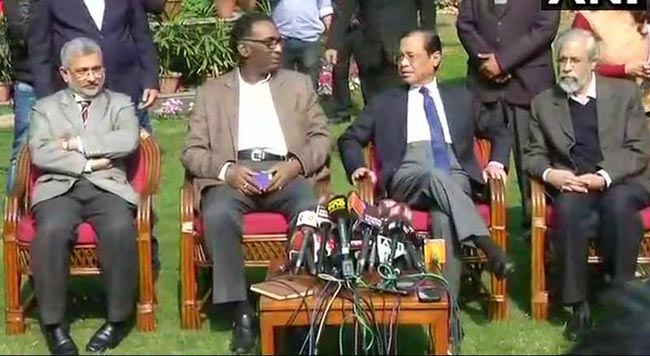 ನ್ಯಾಯಮೂರ್ತಿ ಚೆಲ್ಮೇಶ್ವರ್, ರಂಜನ್ ಗೊಗೋಯಿ, ಮದನ್ ಲೋಕೂರ್ ಹಾಗೂ ಕುರಿಯನ್ ಜೋಸೆಫ್ ಅವರು ಪತ್ರಿಕಾಗೋಷ್ಠಿಯನ್ನುದ್ದೇಶಿ ಮಾತನಾಡಿದ್ದಾರೆ.