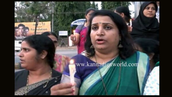 ಜಮ್ಮು- ಕಾಶ್ಮೀರದ ಕತುವಾದಲ್ಲಿ ನಡೆದ ಅತ್ಯಾಚಾರ ಘಟನೆ ಖಂಡಿಸಿ ಮಂಗಳೂರಿನಲ್ಲಿ ಮಹಿಳಾ ಕಾಂಗ್ರೆಸ್ ವತಿಯಿಂದ ಭಾನುವಾರ ಸಂಜೆ ಪ್ರತಿಭಟನೆ ಆಯೋಜಿನಲಾಗಿತ್ತು. ನಗರದ ಲಾಲ್ ಬಾಗ್ ನಲ್ಲಿರುವ ಮಹಾತ್ಮ ಗಾಂಧಿ ಪ್ರತಿಮೆ ಎದುರು ಸೇರಿದ ಕಾಂಗ್ರೆಸ್ ಕಾರ್ಯಕರ್ತೆಯರು ಘಟನೆ ಖಂಡಿಸಿ, ಮೇಣದ ಬತ್ತಿ ಹಿಡಿದು ಪ್ರತಿಭಟನೆ ನಡೆಸಿದರು.