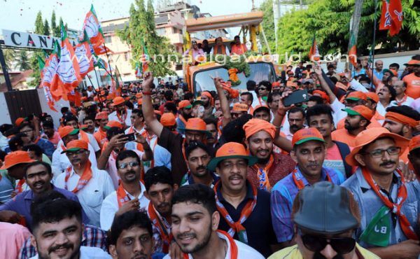 ಮಂಗಳೂರು ದಕ್ಷಿಣ ವಿಧಾನ ಸಭಾ ಕ್ಷೇತ್ರದ ಅಭ್ಯರ್ಥಿ ಡಿ. ವೇದವ್ಯಾಸ ಕಾಮತ್ ಪರ ಮಂಗಳವಾರ ಮಂಗಳೂರು ನಗರದ ನವಭಾರತ ವೃತ್ತ, ನ್ಯೂಚಿತ್ರಾ, ರಥಬೀದಿಯಲ್ಲಿ ಬಿಜೆಪಿ ರಾಷ್ಟ್ರೀಯ ಅಧ್ಯಕ್ಷ ಅಮಿತ್ ಶಾ ಅವರು ರೋಡ್ ಶೋ ನಡೆಸಿದರು. ಕಿಕ್ಕಿರಿದು ತುಂಬಿದ ರಥಬೀದಿಯಲ್ಲಿ ಅಮಿತ್ ಶಾ ಅವರ ರೋಡ್ ಶೋಗೆ ಅಭೂತಪೂರ್ವ ಜನಸ್ಪಂದನೆ ಸಿಕ್ಕಿದ್ದು, ಸುಮಾರು ಏಳರಿಂದ ಎಂಟು ಸಾವಿರದಷ್ಟು ಬಿಜೆಪಿಯ ಕಾರ್ಯಕರ್ತರು, ಮೋದಿ ಅಭಿಮಾನಿಗಳು ರೋಡ್ ಶೋ ದಲ್ಲಿ ಪಾಲ್ಗೊಂಡಿದ್ದರು.
