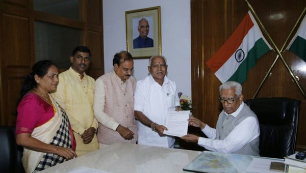 ಅನಂತ್ ಕುಮಾರ್, ಶ್ರೀರಾಮುಲು, ಶೋಭಾ ಕರಂದ್ಲಾಜೆ ಜೊತೆ ರಾಜಭವನಕ್ಕೆ ಭೇಟಿ ನೀಡಿದ ಯಡಿಯೂರಪ್ಪ ಸುದ್ದಿಗಾರರಿಗೆ ಈ ವಿಷಯ ತಿಳಿಸಿದರು.