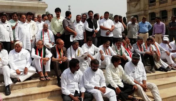 ರಾಜಭವನದಲ್ಲಿ ಯಡಿಯೂರಪ್ಪ ಅವರು ಪ್ರಮಾಣ ವಚನ ಸ್ವೀಕರಿಸಿದ ಅರ್ಧಗಂಟೆ ಗಳಿಕ ಸಿದ್ದರಾಮಯ್ಯ, ಜಿ. ಪರಮೇಶ್ವರ್, ಮಲ್ಲಿಕಾರ್ಜುನ ಖರ್ಗೆ, ರಾಷ್ಟ್ರೀಯ ನಾಯಕ ಗುಲಾಂ ನಭಿ ಆಜಾದ್ ಅವರ ನೇತೃತ್ವದಲ್ಲಿ ಪ್ರತಿಭಟನೆಗೆ ಕುಳಿತಿದ್ದಾರೆ.