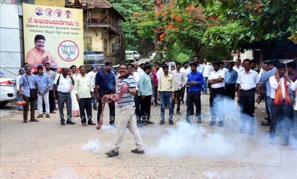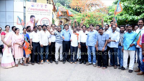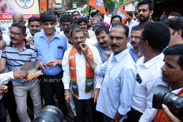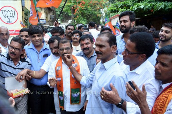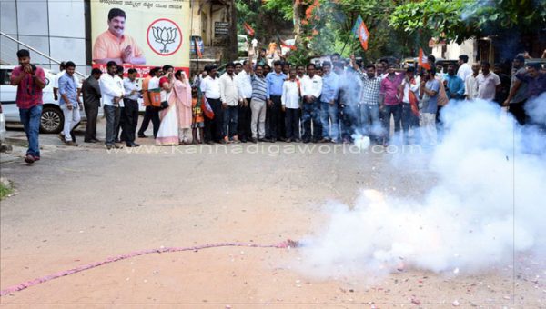 ದ.ಕ.ಜಿಲ್ಲಾ ಬಿಜೆಪಿ ವತಿಯಿಂದ ಮಂಗಳೂರಿನ ಕೊಡಿಯಾಲ್ ಬೈಲ್ನಲ್ಲಿರುವ ಪಕ್ಷದ ಕಚೇರಿ ಮುಂಭಾಗ ಪಕ್ಷದ ಮುಖಂಡರು, ಪದಾಧಿಕಾರಿಗಳು ಹಾಗೂ ಅಪಾರ ಸಂಖ್ಯೆ ಕಾರ್ಯಕರ್ತರು ಸೇರಿ ಪಟಾಕಿ ಸಿಡಿಸಿ, ಸಿಹಿ ಹಂಚುವ ಮೂಲಕ ಸಂಭ್ರಮ ಆಚರಿಸಿದರು.