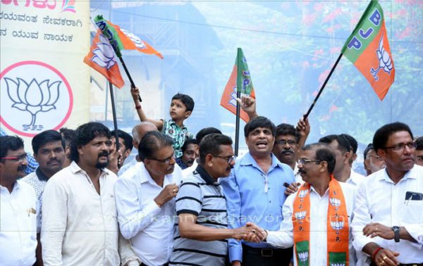 ಮಂಗಳೂರು, ಮೇ 17: ಕರ್ನಾಟಕದ ನೂತನ ಮುಖ್ಯಮಂತ್ರಿಯಾಗಿ ಬಿಎಸ್ ಯಡಿಯೂರಪ್ಪ ಅವರು ಗುರುವಾರ ಬೆಳಗ್ಗೆ ಪ್ರಮಾಣವಚನ ಸ್ವೀಕರಿಸಿದ ಹಿನ್ನೆಲೆಯಲ್ಲಿ ಮಂಗಳೂರಿನಲ್ಲಿ ಬಿಜೆಪಿ ಕಾರ್ಯಕರ್ತರು ವಿಜಯೋತ್ಸವ ಆಚರಿಸಿದರು.