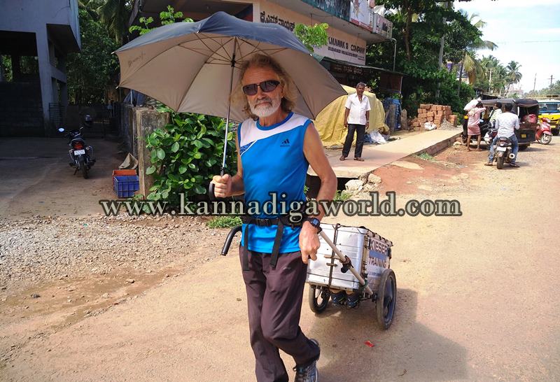 ಕುಂದಾಪುರ: ಪರಿಸರದ ಸೋಜಿಗ, ಪರಿಸರ ಉಳಿದರೆ ನಾವು ಎನ್ನುವ ಉದ್ದೇಶದಿಂದ 2017,ಜೂ.18 ರಂದು ಜರ್ಮನ್ ದೇಶದ ಮ್ಯೂನಿಕ್ ನಗರಿಂದ ಪಾದಯಾತ್ರೆ ಆರಂಭಿಸಿದ ಜರ್ಮನ್ ಪ್ರಜೆ ಕುನೋ ಪೆನ್ನೇರ್ ಕುಂದಾಪುರ ಸಂತೆ ಮಾರುಕಟ್ಟೆಯ ಸಮೀಪ ಮಾತಿಗೆ ಸಿಕ್ಕರು. ಇವರ ಪರಿಸರ ಪ್ರೇಮ ನಿಜಕ್ಕೂ ಎಲ್ಲರಿಗೂ ಮಾದರಿ. ಪರಿಸರ ನಮಗಾಗಿ ಎಲ್ಲವನ್ನೂ ಕೊಟ್ಟಿದೆ ನಾವು ಏನು ಕೊಟ್ಟಿದ್ದೇವೆ ಎಂದು ನಮ್ಮನ್ನು ನಾವು ಪ್ರಶ್ನಿಸಿಕೊಂಡರೆ ಉತ್ತರ ಸಿಗುತ್ತದೆ. ಆದರೆ ಆ ಪ್ರಯತ್ನ ಯಾರೂ ಮಾಡುತ್ತಿಲ್ಲ ಎನ್ನುವ ಬೇಸರ 67ರ ಇಳಿವಯಸ್ಸಿನ ಈ ಅಜ್ಜನದ್ದು.
