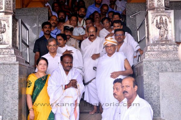 ಅವರು ಅಲ್ಲಿಂದ ಕಾರಿನಲ್ಲಿ ಶ್ರೀ ಕ್ಷೇತ್ರಕ್ಕೆ ಧರ್ಮಸ್ಥಳಕ್ಕೆ ತೆರಳಿದ ಕುಮಾರ ಸ್ವಾಮಿಯವರನ್ನು ದೇವಳದ ವತಿಯಿಂದ ಮೆರವಣಿಗೆಯ ಮೂಲಕ ಬರಮಾಡಿಕೊಳ್ಳಲಾಯಿತು. ಬಳಿಕ ಅವರು ಧರ್ಮಸ್ಥಳ ಶ್ರೀ ಮಂಜುನಾಥೇಶ್ವರ ದೇವಳಕ್ಕೆ ಭೇಟಿ ನೀಡಿ ಅಲ್ಲಿ ವಿಶೇಷ ಪೂಜೆ ಸಲ್ಲಿಸಿದರು.
