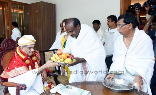ಪತ್ನಿ ಅನಿತಾ ಕುಮಾರಸ್ವಾಮಿ ಜೊತೆಗೆ ಧರ್ಮಸ್ಥಳ ಮಂಜುನಾಥೇಶ್ವರ ಸನ್ನಿಧಿಯಲ್ಲಿ ದೇವರ ದರ್ಶನ ಪಡೆದು ಪೂಜೆ ಸಲ್ಲಿಸಿದ ಬಳಿಕ ಕುಮಾರಸ್ವಾಮಿ ಅವರು ಧರ್ಮಸ್ಥಳ ಧರ್ಮಾಧಿಕಾರಿ ವೀರೇಂದ್ರ ಹೆಗ್ಗಡೆಯವರ ಜೊತೆ ಚರ್ಚೆ ನಡೆಸಿದರು. ಇದೇ ಸಂದರ್ಭ ವೀರೇಂದ್ರ ಹೆಗ್ಗಡೆ ಅವರಿಗೆ ಹೂ ಹಾರ ಹಾಕಿ ಫಲಪುಷ್ಪ ನೀಡಿ ಕುಮಾರಸ್ವಾಮಿ ದಂಪತಿ ಗೌರವಿಸಿದರು.