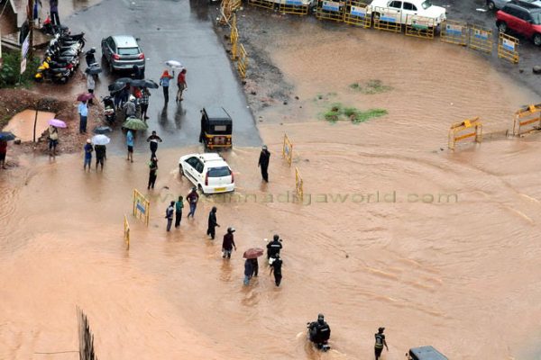 ಮಂಗಳೂರಿನ ರಥಬೀದಿಯಿಂದ ಮಹಾಮ್ಮಾಯಿ ದೇವಸ್ಥಾನ ಮುಂಭಾಗದಿಂದ ಡೊಂಗರಕೇರಿಗೆ ಸಾಗುವ ರಸ್ತೆ, ಕುದ್ರೋಳಿಯಿಂದ ಪ್ರಗತಿ ಸರ್ವಿಸ್ ಸ್ಟೇಷನಗೆ ಹೋಗುವ ರಸ್ತೆಯಲ್ಲಿ ಚರಂಡಿ ನೀರು ರಸ್ತೆಯಲ್ಲಿ ಹರಿಯುತ್ತಿರುವುದರಿಂದ ಪಾದಚಾರಿಗಳು, ವಾಹನ ಸವಾರರು ಸಂಕಷ್ಟಕ್ಕೊಳಗಾದರು. ಪ್ರಗತಿ ಸರ್ವೀಸ್ ಸ್ಟೇಷನ್ ಎದುರಿನ ರಸ್ತೆ ಸಂಪೂರ್ಣ ಜಲಾವೃತಗೊಂಡಿದ್ದು, ಸರ್ವೀಸ್ ಸ್ಟೇಷನ್ಗೂ ನೀರು ನುಗ್ಗಿದೆ.