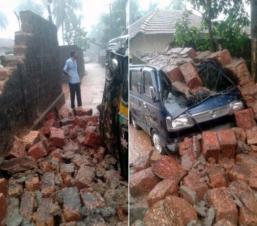 ನಗರ ಹೊರವಲಯದ ಅಡ್ಯಾರ್ ಕಣ್ಣೂರು ಸಮೀಪದ ಬೋರುಗುಡ್ಡೆಯಲ್ಲಿ ಮನೆಯೊಂದರ ಆವರಣ ಗೋಡೆ ಕುಸಿದು ಸಮೀಪದಲ್ಲೇ ನಿಲ್ಲಿಸಲಾಗಿದ್ದ ಓಮ್ನಿ ಕಾರೊಂದರ ಮೇಲೆ ಬಿದ್ದಿದ್ದು, ಕಾರು ಭಾಗಶಃ ಜಖಂಗೊಂಡಿದೆ.ಆದರೆ ಯಾರಿಗೂ ಅಪಾಯವಾಗಿಲ್ಲ ಎಂದು ತಿಳಿದು ಬಂದಿದೆ.