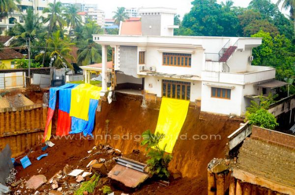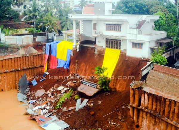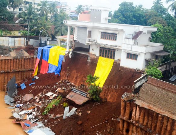 ಮಂಗಳೂರು, ಮೇ 30: ಮಂಗಳವಾರ ಸುರಿದ ಭಾರೀ ಮಳೆಗೆ ನಗರದ ಫಳ್ನೀರ್ ಬಳಿ ನೂತನ ವಸತಿ ಸಮುಚ್ಛಯ ನಿರ್ಮಾಣವಾಗುತಿದ್ದ ಸ್ಥಳದಲ್ಲಿ ಮಣ್ಣು ಜರಿದ ಪರಿಣಾಮ ಮನೆಯೊಂದು ಅಪಾಯದ ಸ್ಥಿತಿಯಲ್ಲಿದೆ.