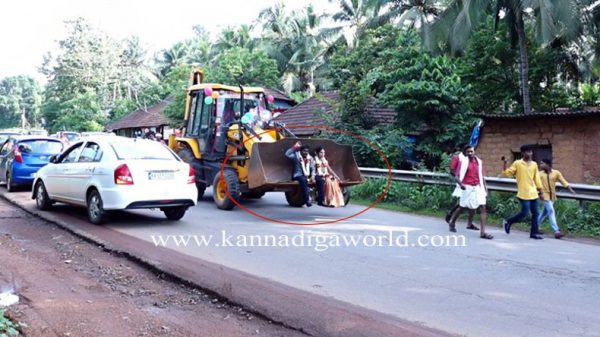 ವಿವಾಹದ ಬಳಿಕ ಸುಮಾರು ಎರಡು ಕಿ ಮೀ ಜೆಸಿಬಿ ಯಂತ್ರದಲ್ಲೆ ದಿಬ್ಬಣ ಸಂಚಾರ ನಡೆದಿದೆ. ಜೆಸಿಬಿಯಲ್ಲಿ ಮಾಣಿ – ಮೈಸೂರು ರಾ.ಹೆದ್ದಾರಿಯಲ್ಲೆ ದಿಬ್ಬಣ ಸಂಚಾರ ನಡೆಸುವ ಮೂಲಕ ಅಚ್ಚರಿ ಮೂಡಿಸಿದ್ದಾರೆ.
