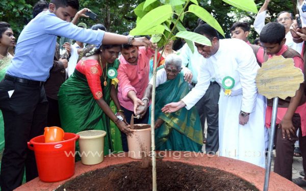 ನಗರದ ಸಂತ ಅಲೋಶಿಯಸ್ ಕಾಲೇಜಿಗೆ ಇಂದು ಆಗಮಿಸಿದ ಶತಾಯುಷಿ ಡಾ.ಸಾಲುಮರದ ತಿಮ್ಮಕ್ಕ ಅವರು ಅಲೋಶಿಯಸ್ ಪಪೂ ಕಾಲೇಜು ಆವರಣದ ಸಂತ ಮದರ್ ತೆರೆಸಾ ಶಾಂತಿವನದಲ್ಲಿ ಎರಡು ಸಸಿಗಳನ್ನು ನೆಡುವ ಮೂಲಕ ‘ವೃಕ್ಷಾಂಜಲಿ’ ವನ ಸಂರಕ್ಷಣಾ ಜಾಗೃತಿ ಕಾರ್ಯಕ್ರಮಕ್ಕೆ ಚಾಲನೆ ನೀಡಿದರು.
