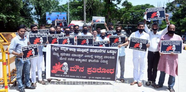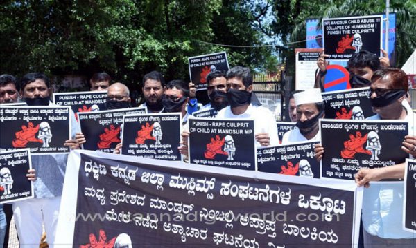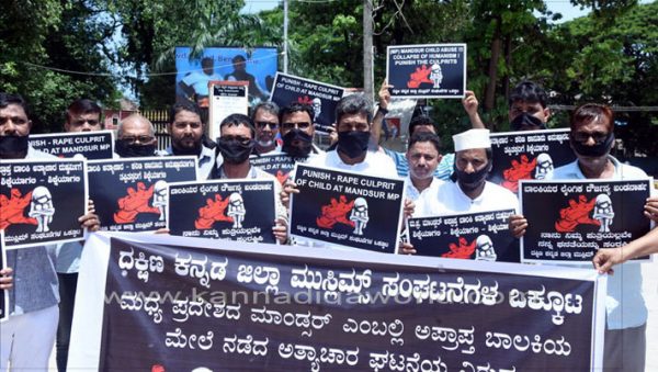 ಮಂಗಳೂರು, ಜುಲೈ.5: ಮಧ್ಯಪ್ರದೇಶದಲ್ಲಿ 7 ವರ್ಷದ ಬಾಲಕಿಯ ಮೇಲೆ ನಡೆದಿರುವ ಅತ್ಯಾಚಾರ ಪ್ರಕರಣವನ್ನು ಖಂಡಿಸಿ ದ.ಕ. ಜಿಲ್ಲಾ ಮುಸ್ಲಿಂ ಸಂಘಟನೆಗಳ ಒಕ್ಕೂಟದಿಂದ ಗುರುವಾರ ಮಂಗಳೂರಿನ ಜಿಲ್ಲಾಧಿಕಾರಿ ಕಚೇರಿ ಮುಂದೆ ಪ್ರತಿಭಟನೆ ನಡೆಯಿತು.