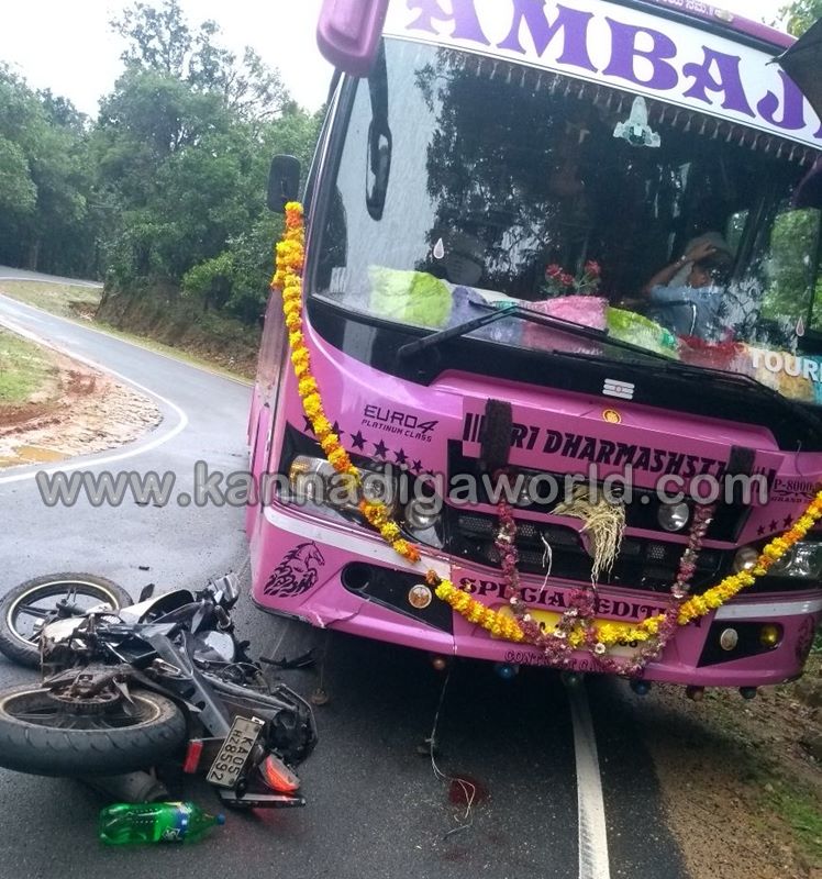 ಕುಂದಾಪುರ: ತಿರುಪತಿಗೆ ತೆರಳುತ್ತಿದ್ದ ಬಸ್ ಹಾಗೂ ಬೈಕ್ ನಡುವೆ ಸಂಭವಿಸಿದ ಮುಖಾಮುಖಿ ಡಿಕ್ಕಿಯಲ್ಲಿ ಬೈಕ್ ಸವಾರ ಸ್ಥಳದಲ್ಲೇ ಮೃತಪಟ್ಟ ಘಟನೆ ಹೊಸನಗರ ತಾಊಕಿನ ನಗರ ಬಳಿಯ ಯಡುರು ಎಂಬಲ್ಲಿ ನಡೆದಿದೆ.