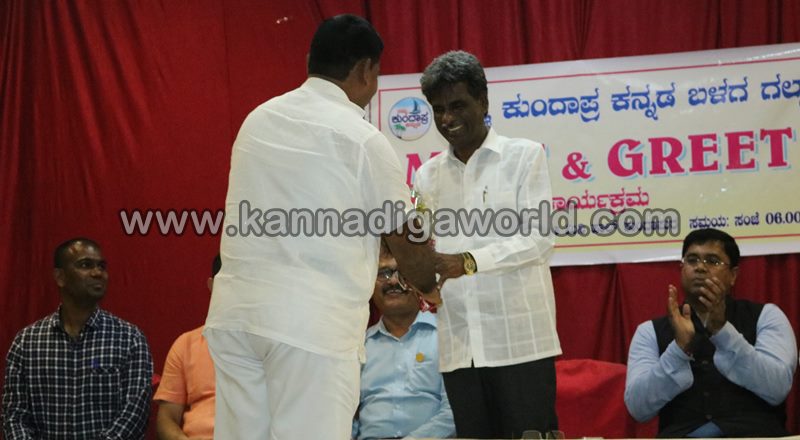 ಕೋಟೇಶ್ವರ ಸಮೀಪದ ಸಹನಾ ಕನ್‌ವೆನ್‌ಷನ್ ಸೆಂಟರ್‌ನಲ್ಲಿ ನಮ್ಮ ಕುಂದಾಪ್ರ ಕನ್ನಡ ಬಳಗ ಗಲ್ಫ್ ಆಯೊಜಿಸಿದ್ದ ಮೀಟ್ ಅಂಡ್ ಗ್ರೀಟ್ ಸಮಾರಂಭದಲ್ಲಿ ಸನ್ಮಾನ ಸ್ವೀಕರಿಸಿ ಅವರು ಮಾತನಾಡಿದರು.