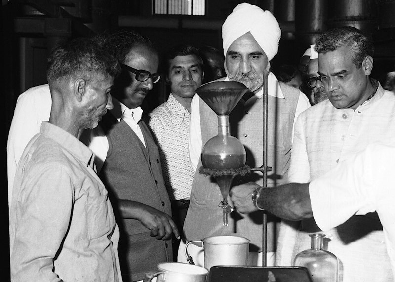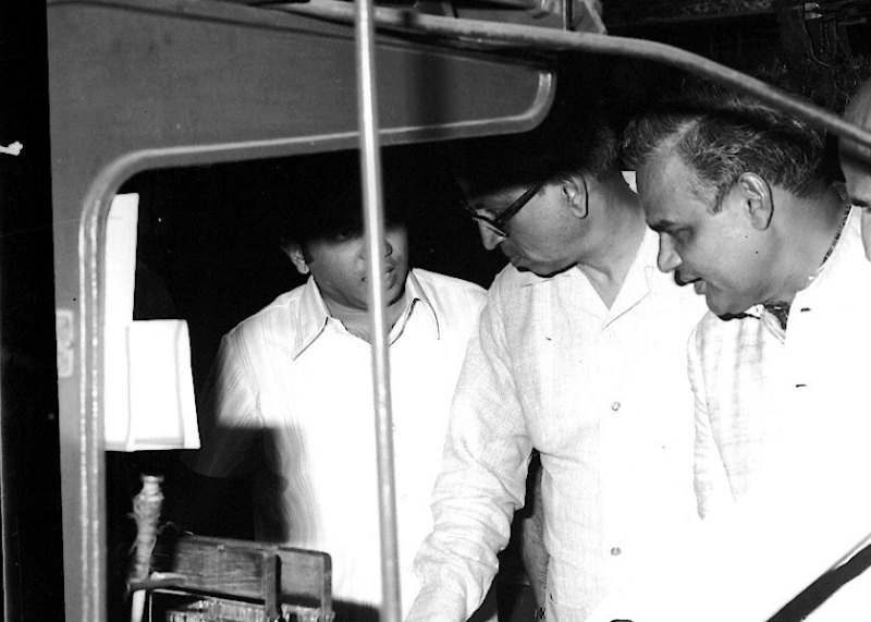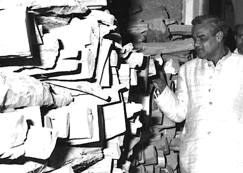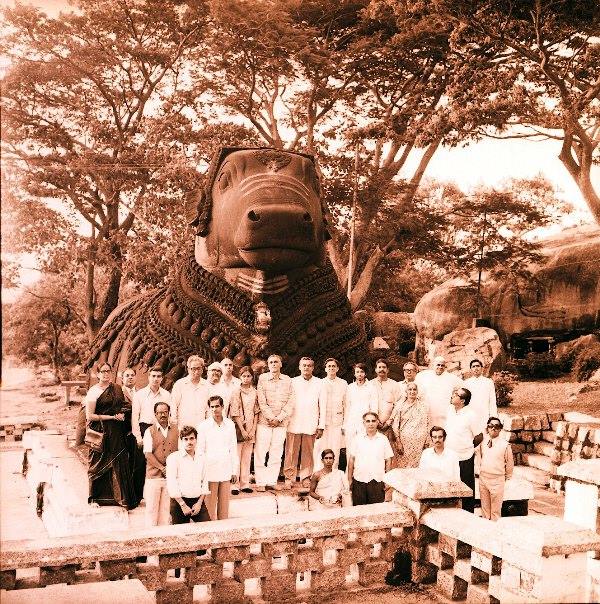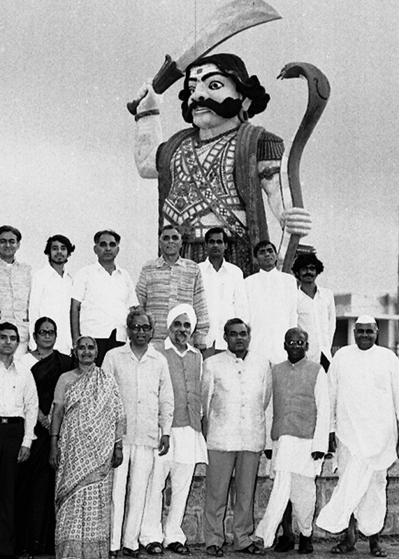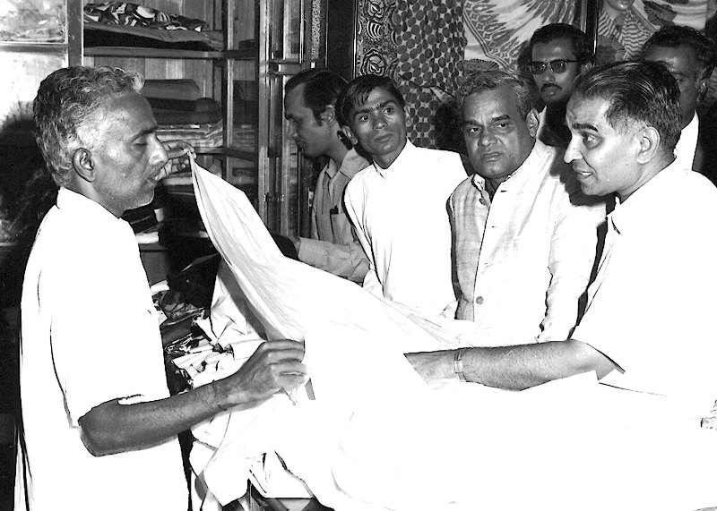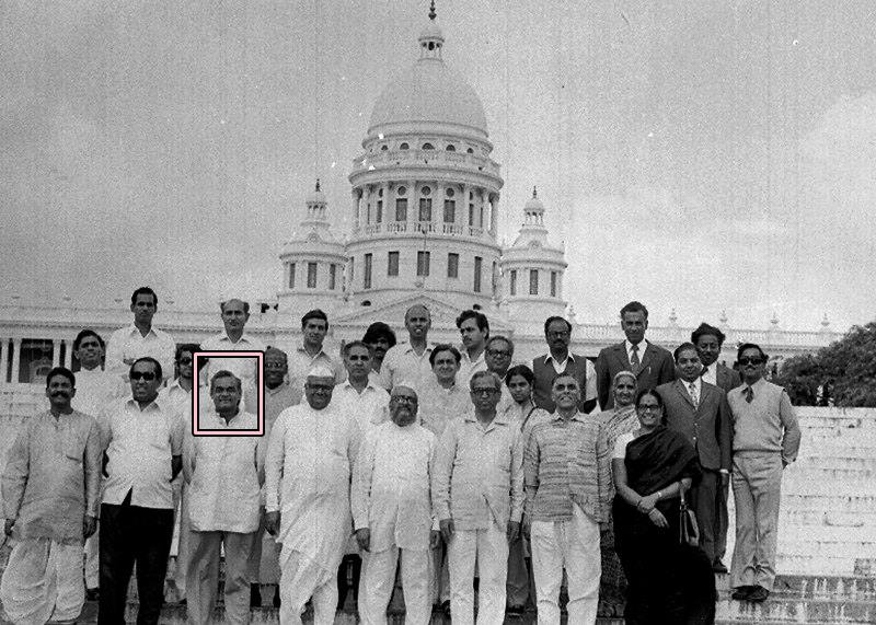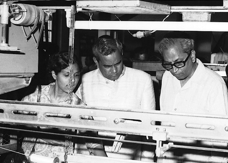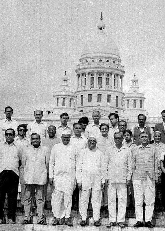 { As one of the Members of the Parliamentary Delegation Mr Atal Behari Vajpayee had visited the City of Palaces Mysore. These are the glimpses of his visit. Photographs taken in front of the Statue of Mahishasura on the Chamundi Hills, Lalith Mahal Palace on the foothills of Chamundi Hills, Participating at a Banquet in the same Hotel, Looking at the Silk Sarees at the Government Silk Factory’s KSIC Show Room Outlet, Having an inquisitive look at the Sandalwood and Sandal Oil Production at the Mysore Sandal Oil Factory.}