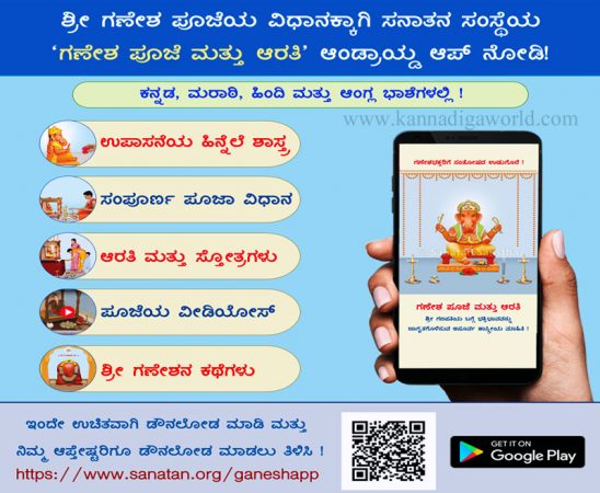 ‘ಶ್ರೀ ಗಣೇಶ ಪೂಜಾ ಮತ್ತು ಆರತಿ’ ಈ ಆಪ್‌ಗಾಗಿ ಈ ಲಿಂಕ್ ಕ್ಲಿಕ್ ಮಾಡಿರಿ : https://www.sanatan.org/ganeshapp