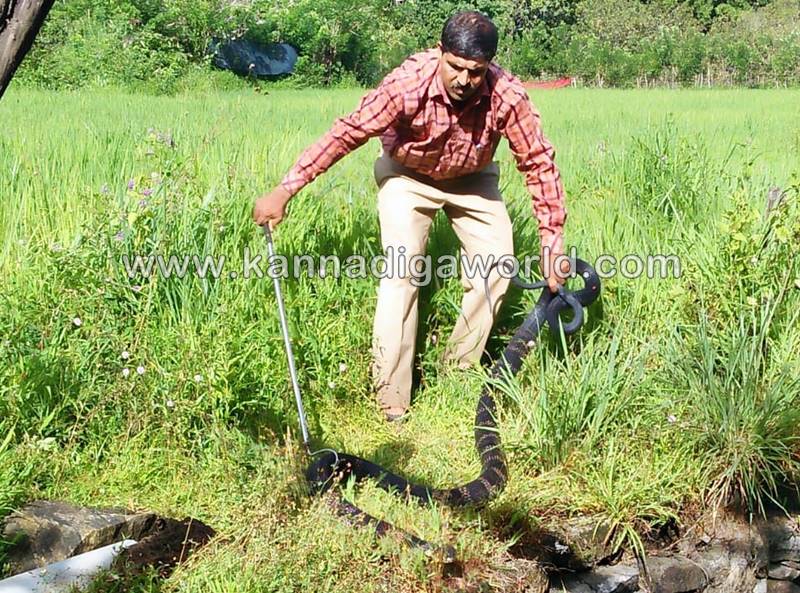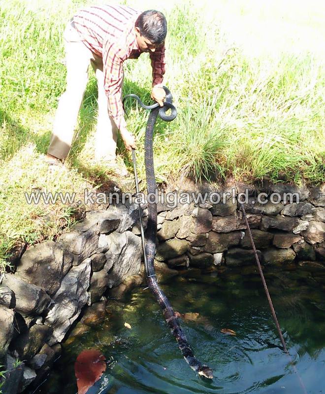 13 ಅಡಿ ಉದ್ದ 15 ಕೆ.ಜಿ ತೂಕದ ಬೃಹತ್ ಕಾಳಿಂಗ ಸರ್ಪ ಇದಾಗಿದ್ದು ರಕ್ಷಿಸಿದ ಕಾಳಿಂಗ ಸರ್ಪವನ್ನು ಸುರಕ್ಷಿತವಾಗಿ ಕಾಡಿಗೆ ಬಿಡಲಾಗಿದೆ.