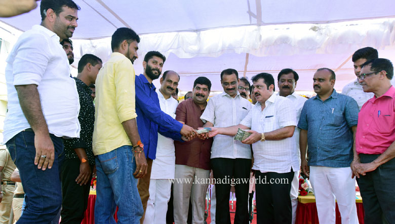 ಕುಡುಪು ಕರ್ನಾಟಕ ಹೌಸಿಂಗ್ ಬೋರ್ಡ್ ನಲ್ಲಿ ಕಾನೂನು ಮಾಪನ ಶಾಸ್ತ್ರ ಇಲಾಖಾ ಕಚೇರಿಗಳ ಸಂಕೀರ್ಣ ‘ಮಾಪನ ಭವನ’ ಕಟ್ಟಡಕ್ಕೆ ಶಿಲಾನ್ಯಾಸ ಕಾರ್ಯಕ್ರಮದ ವೇದಿಕೆಯಲ್ಲಿ ಸಚಿವರು ತಂಡದ ಇನ್ನುಳಿದ ನಾಲ್ವರು ಯುವಕರಾದ ಬಿಪಿನ್ ಕಲ್ಲುಗುಂಡಿ, ಮನೋಹರ ಕಲಿವೆ, ವಿಜಯ ನಿಡಿಂಜಿ ಮತ್ತು ದಿನೇಶ್ ಕುಲ್ಲುಗುಂಡಿ ಅವರಿಗೆ ಕುಟುಂಬದ ಜೊತೆ ದೇವಾಲಯಗಳಿಗೆ ತೆರಳಲು ಅನುಕೂಲ ವಾಗುವಂತೆ ತಲಾ ಒಂದು ಲಕ್ಷ ರೂ. ನಗದನ್ನು ವೇದಿಕೆಯಲ್ಲೇ ವಿತರಿಸಿದರು.