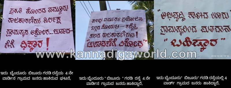 ಕುಂದಾಪುರ: ಪ್ರಗತಿ ಹೊಂದದ ನಮ್ಮೂರು, ರಾಜಕಾರಣಿಗಳ ನಿರ್ಲಕ್ಷ್ಯ…ಹಲವು ವರ್ಷಗಳಿಂದ ಮಾಡಿದ ಹೋರಾಟ ಪ್ರಯೋಜನಕ್ಕಿಲ್ಲ. ನಮ್ಮ ಸಮಸ್ಯೆಯನ್ನು ಕಣ್ಣೆತ್ತಿ ಕಾಣುತ್ತಿಲ್ಲ ರಾಜಕಾರಣಿಗಳು! ಅಭಿವೃದ್ದಿ ಕಾಣದ ಊರಿನ ಗ್ರಾಮಸ್ಥರಿಂದ ಮತದಾನ ಬಹಿಷ್ಕಾರ! ಗ್ರಾಮಸ್ಥರ ಆಕ್ರೋಷ! ಚುನಾವಣೆಗೆ ಧಿಕ್ಕಾರ, ವಿರೋಧ!– ಇದೆಲ್ಲ ಕಂಡು ಬಂದಿದ್ದು ಬೈಂದೂರು ವಿಧಾನಸಭಾ ಕ್ಷೇತ್ರದ ಬಿಜೂರು ಎಂಬಲ್ಲಿನ ನಾಲ್ಕನೆ ವಾರ್ಡ್ ಪ್ರದೇಶದಲ್ಲಿ.