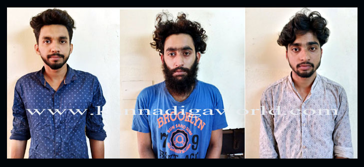 ಕೇರಳದ ಕಾಸರಗೋಡು ಜಿಲ್ಲೆಯ ಮಂಜೇಶ್ವರ ನಿವಾಸಿ ಶಾಹಿರ್ (23),ಕಾಸರಗೋಡು ಜಿಲ್ಲೆಯ ಉಪ್ಪಳ ನಿವಾಸಿ ಮುಹಮ್ಮದ್ ಆದಿಲ್ (26), ಕಾಸರಗೋಡಿನ ಅಬ್ದುಲ್ ಮುನಾವರ್ @ ಮುನ್ನ (21) ಬಂಧಿತ ಆರೋಪಿಗಳು.