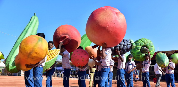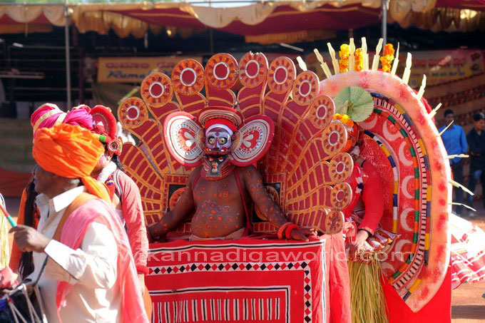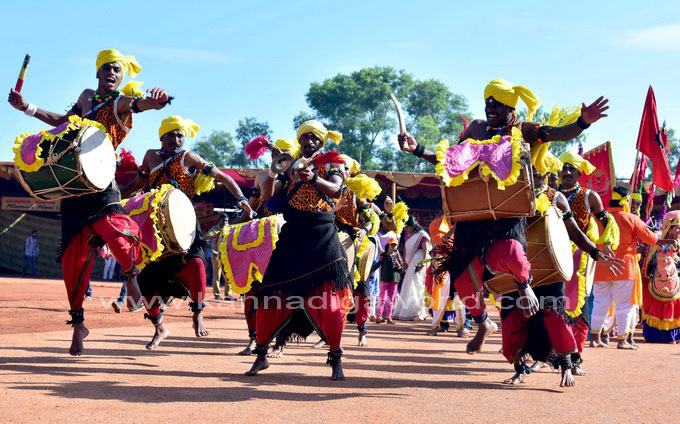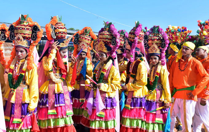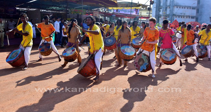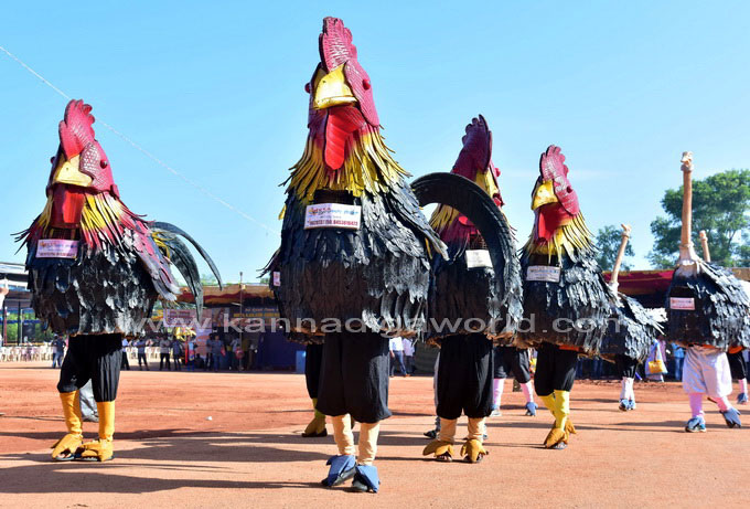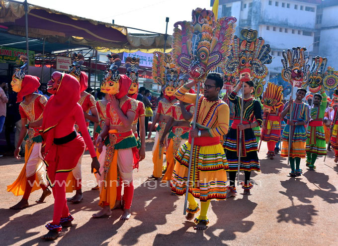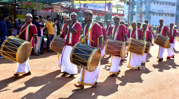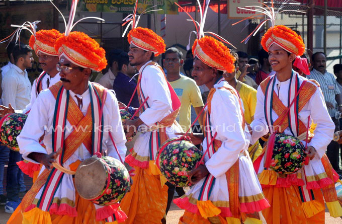 ಕಾರ್ಕಳದ ರಂಜಿತ್ ಅವರ ಘಟೋತ್ಕಜ, ಮಂಡ್ಯದ ಜಾನಪದ ಕಲಾ ತಂಡದ ನಂದಿ ಧ್ವಜ, ಪುಂಜಾಲುಕಟ್ಟೆಯ ಶ್ರೀನಿವಾಸರ ತಂಡದಿಂದ 15 ಶಂಖ, ಮೂಡುಬಿದಿರೆಯ ಹರೀಶ್ ತಂಡದಿಂದ 15 ಕೊಂಬು ಮತ್ತು ಚೆಂಡೆ, ಅಶ್ವತ್ಥಪುರದ ನಾದಸ್ವರ ತಂಡ, ಬೆದ್ರ ಫ್ರೆಂಡ್ಸ್ನ ಹುಲಿ ವೇಷ, ಕಲ್ಲಡ್ಕದ ರಮೇಶ್ ಅವರ ಶಿಲ್ಪಾಗೊಂಬೆ ಬಳಗ, ಮಂಗಳೂರಿನ ದೀಪಕ್ ಶೆಟ್ಟಿ ಅವರ ಕಿಂಗ್ ಕೋಂಗ್, ಮಂಗಳೂರಿನ ಕೊರಗರ ಗಜಮೇಳದಿಂದ ಮಂಗಳೂರು ಡೋಲು, ಚಾಮರಾಜ ನಗರ ತಂಡದಿಂದ ಗೊರವರ ಕುಣಿತ, ಬಿಜಾಪುರದ ಲಂಬಾಣಿ, ಮಂಡ್ಯದ ದೇವರಾಜ್ ತಂಡದಿಂದ ಪೂಜಾ ಕುಣಿತ ಮತ್ತು ವೀರಭದ್ರ ಕುಣಿತ, ಬಂಟ್ವಾಳದ ಚಿಲಿಪಿಲಿ ತಂಡ, ಚಿತ್ರದುರ್ಗದ ಜಾನಪದ ತಂಡದಿಂದ ಮರಗಾಲು, ಚಿತ್ರದುರ್ಗದ ಬ್ಯಾಂಡ್ ಸೆಟ್, ಕೇರಳದ ಅರ್ಧ ನಾರೀಶ್ವರ, ಹಾವೇರಿ ಜಿಲ್ಲೆಯ ಬೇಡರ ಕುಣಿತ, ಕೇರಳದ ಸುಜಿತ್ ತಂಡದಿಂದ ಕೇರಳದ ದೇವರ ವೇಷ, ಕುಂದಾಪುರದ ಡೋಲು ಮೆರವಣಿಗೆಗೆ ಮೆರುಗು ನೀಡಿದವು.