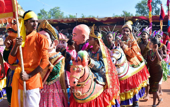 ಉಡುಪಿ ಮಂದಾರ್ತಿ ತಂಡದಿಂದ ಗುಮ್ಟೆ ಕುಣಿತ, ಬಳ್ಳಾರಿಯ ಅಶ್ವರಾಮ ತಂಡದಿಂದ ಹಗಲು ವೇಷ, ಮೈಸೂರಿನ ಮಂಜು ತಂಡದಿಂದ ಪುರುಷರ ಮತ್ತು ಮಹಿಳೆಯರ ನಗಾರಿ, ಬೆಳ್ತಂಗಡಿಯ ಶೆಟ್ಟಿ ಆರ್ಟ್ಸ್ನ ತಂಡದಿಂದ ಬೊಂಬೆಗಳು, ಹಾವೇರಿಯ ಜಾನಪದ ಕಲಾ ತಂಡದಿಂದ ಪುರವಂತಿಕೆ, ಕೇರಳದ ತೆಯ್ಯಮ್ ಮತ್ತು ಪಂಚವಾದ್ಯ, ಧಾರವಾಡದ ಜಾನಪದ ಕಲಾ ತಂಡದಿಂದ ಜಗ್ಗಳಿಕೆ ಮೇಳ, ಮೂಕಾಂಬಿಕಾ ಚೆಂಡೆ ಬಳಗದಿಂದ ಕೊಂಚಾಡಿ ಚೆಂಡೆ, ಕಾರ್ಕದ ದಿವಾಕರ್ ಅವರ ಕೋಳಿಗಳು, ಸಲೀಂ ಹಂಡೇಲು ಅವರ ತಂಡದಿಂದ ದಫ್, ಉಡುಪಿ ತಂಡದಿಂದ ಗೂಳಿ, ಬಿದಿರೆ ಆರ್ಟ್ಸ್ನ ಯಶೋಧರ ಬಂಗೇರ ತಂಡದಿಂದ ಕೀಲುಕುದುರೆ ಮತ್ತು ಗೊಂಬೆಗಳು, ಹೊನ್ನಾವರ ಜೇಮ್ಸ್ ಅವರ ಬ್ಯಾಂಡ್ ಸೆಟ್, ಬೆಳ್ತಂಗಡಿಯ ರಾಜೀವ್ ಮತ್ತು ತಂಡದಿಂದ ವಂಶಿಕಾ ಗೊಂಬೆ ಬಳಗ, ಶಿವಮೊಗ್ಗದ ಬುದಿಯಪ್ಪ ಮತ್ತು ತಂಡದಿಂದ ಡೊಳ್ಳು ಕುಣಿತ, ಪ್ರಸಾದ್ ಮಿಜಾರು ತಂಡದಿಂದ ತುಳುನಾಡ ವಾದ್ಯ, ಸಿರಿಗೆರೆಯ ಮಕ್ಕಳ ತಂಡ ಮತ್ತು ರೈತರು ಮತ್ತು ಮೂಡುಬಿದಿರೆ ಕೇಶವ ಶೇರಿಗಾರ್ ಸ್ಯಾಕ್ಸೋಫೋನ್ ನೋಡುಗರನ್ನು ಮೋಡಿ ಮಾಡಿದವು.